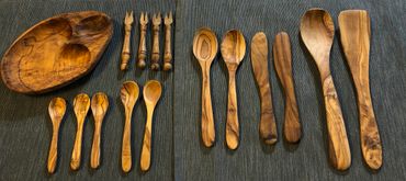 來自南義,取自百年老藤原木製作,有平板托盤、大湯勺、醬料碟、奶油刀、小茶匙等。